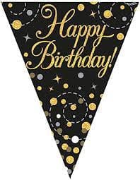 Stór svört og gyllt "Happy birthday" fánalengja- 3.9m