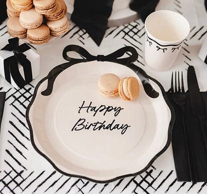 Svartar “Happy Birthday” matarservíettur - 20stk