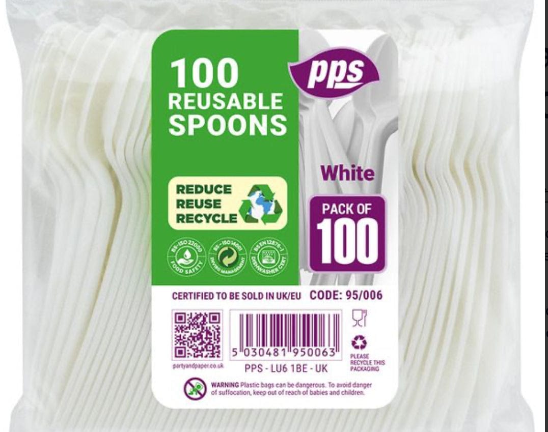 Hvítar plastskeiðar - 100stk