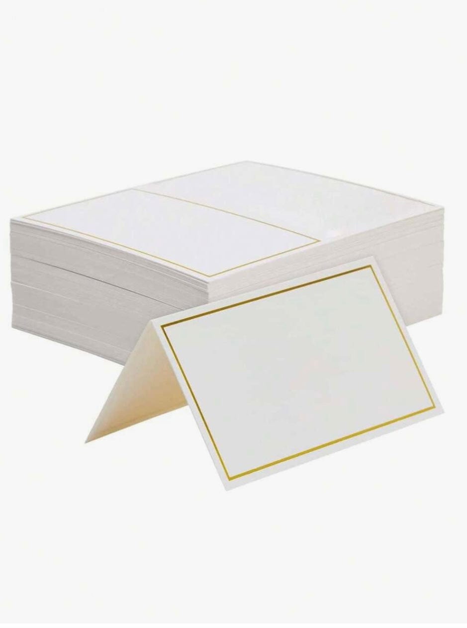 Hvít merkispjöld með gylltri rönd - 50stk í pakka