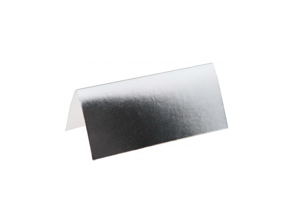 Hvít merkispjöld með silfur rönd - 50stk í pakka