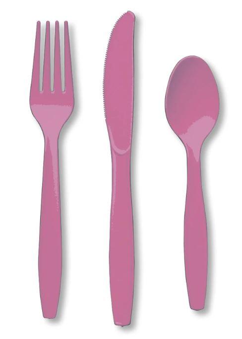 Dökkbleik hnífapör - 24stk í pakka