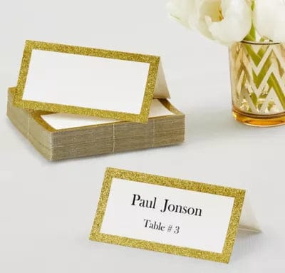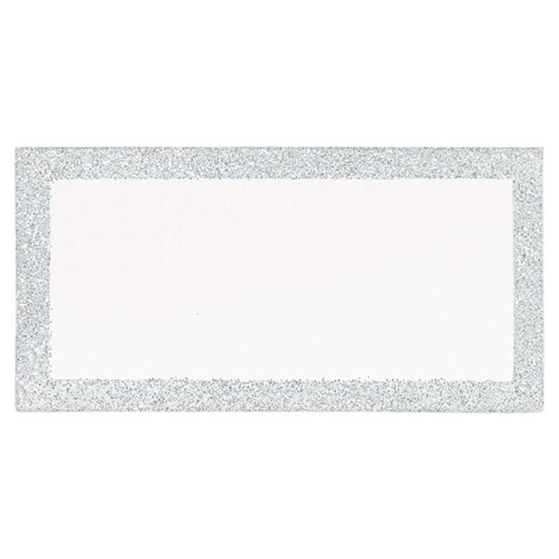 Hvít merkispjöld með glimmer ramma - 50stk í pakka