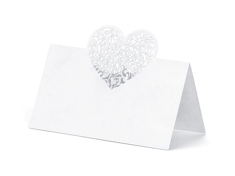 Hvít útskorin hjarta merkispjöld - 10stk í pakka