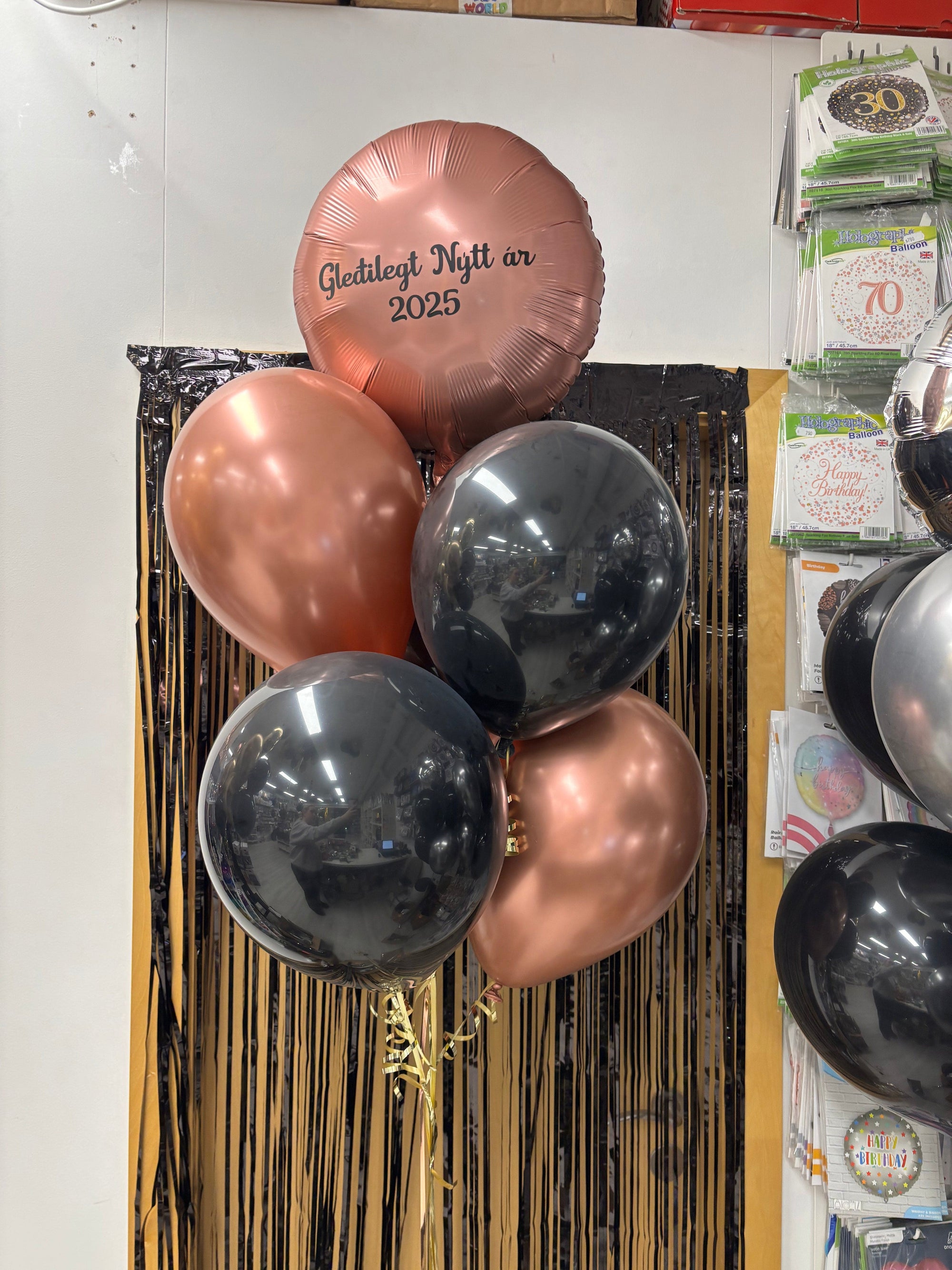 Rósagylltur áramótavöndur "Gleðilegt Nýtt ár" - með helíum og blöðrulóði