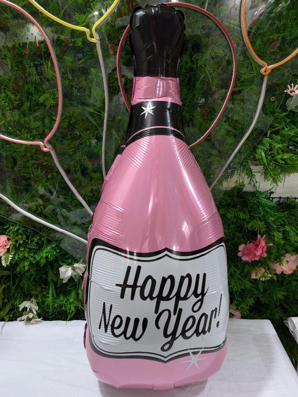 Bleik Happy New Year kampavínsblaðra - 100cm