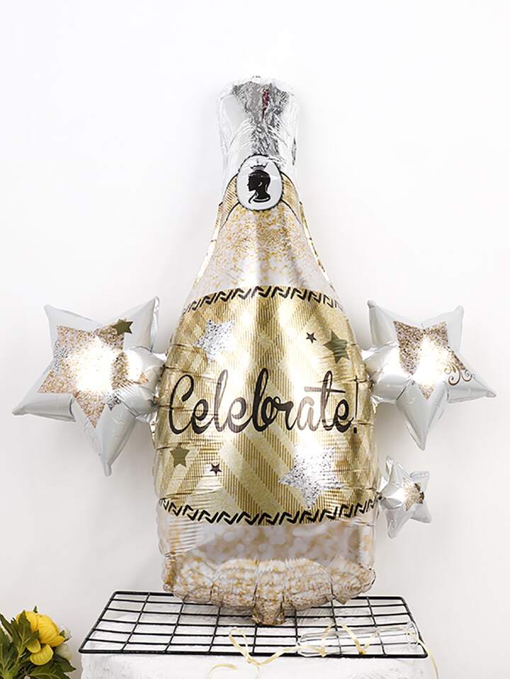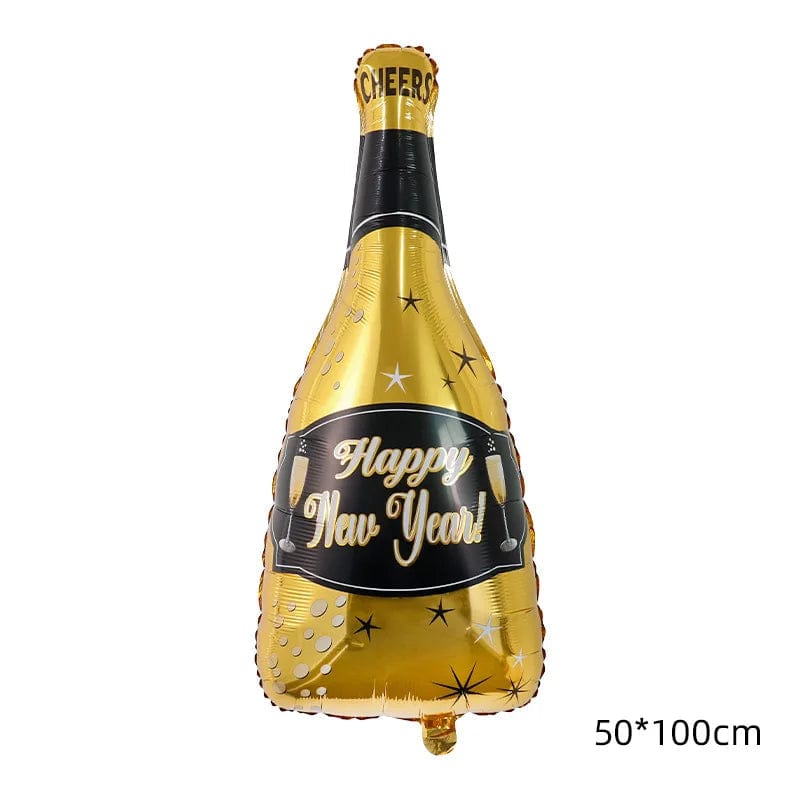 Gyllt og svört happy new year kampavínsblaðra - 100cm