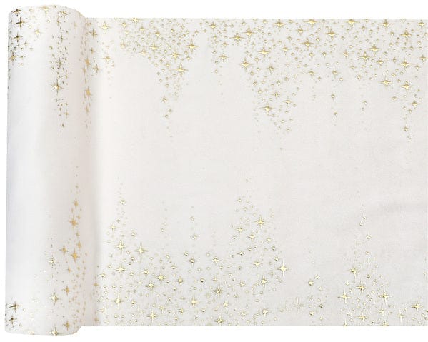Hvítur borðrenningur með gylltum stjörnum 46,5cm x 3m