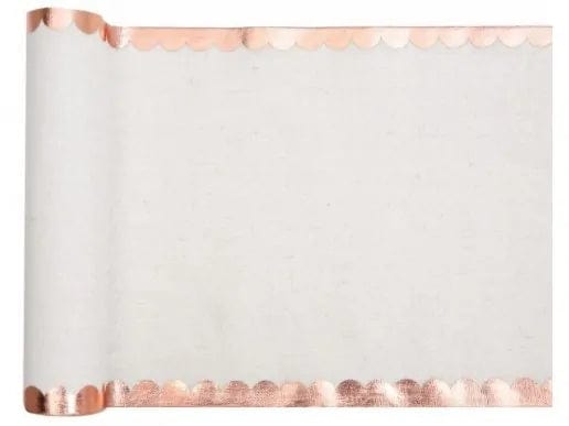 Hvítur borðrenningur með rósagylltum enda, 28cm x 3m