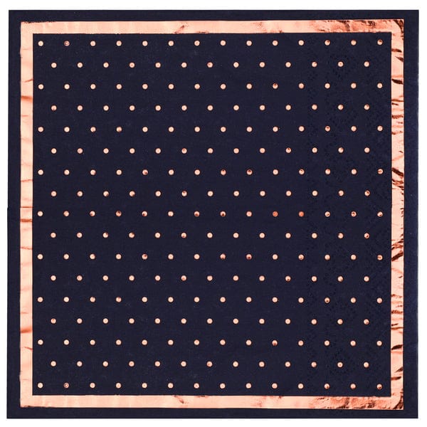Dökkbláar servíettur með rósagylltum doppum 20stk