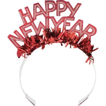 Áramóta kóróna “HAPPY NEW YEAR” -rauð og silfurlituð