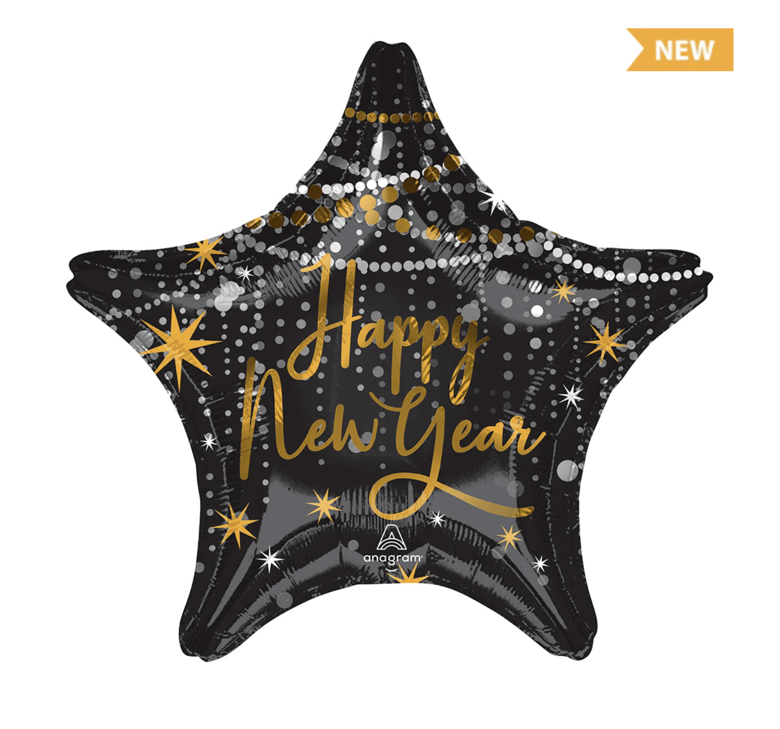 Gyllt “Happy New Year” stjörnuálblaðra 38x44cm