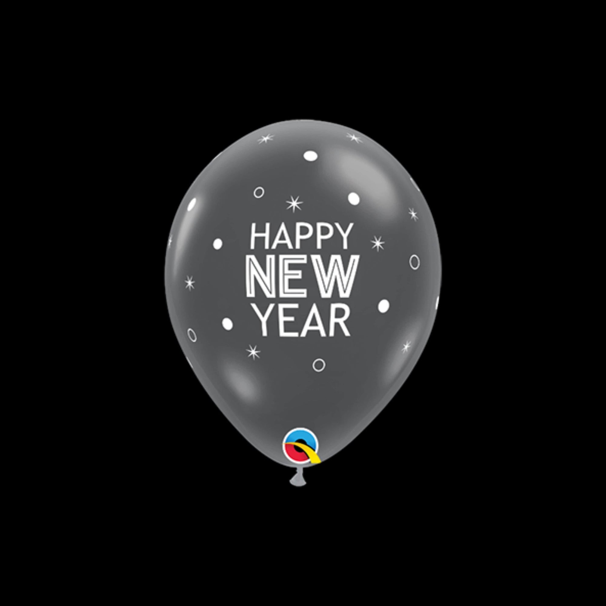 Svart og gyllt "Happy new year" blöðru kit- 5x blöðrur