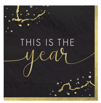 Svartar og gylltar "This is the Year" matarservíettur 20stk