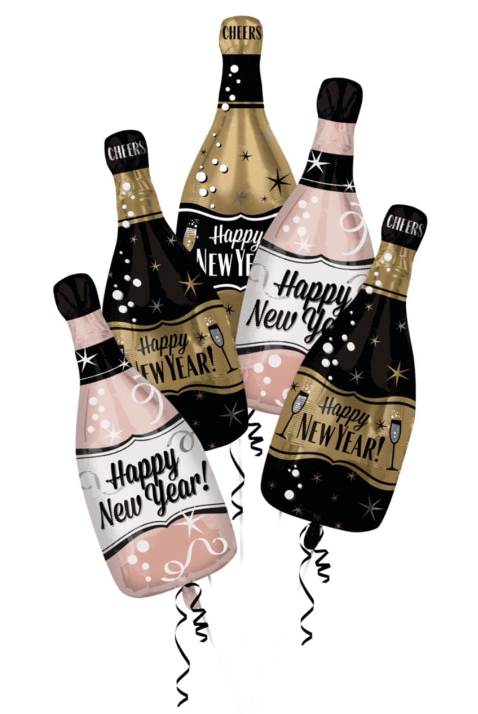 3 tegundir "Happy New Year" kampavínsblöðrur - 66cm