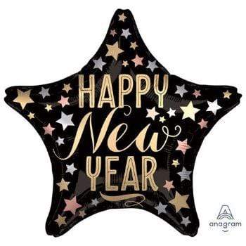 Svört stjörnulaga "Happy New Year" álblaðra - 48cm
