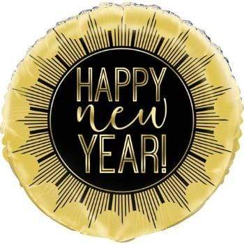 Gyllt og svört "Happy New Year" álblaðra - 45cm