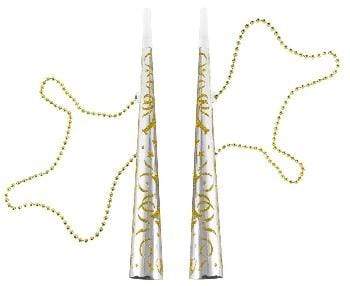 Áramótalúðrar silfur og gull með keðju- 2 stk í pakka