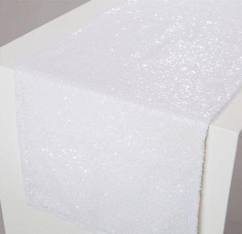 Hvítur pallíettu renningur 30x270 cm