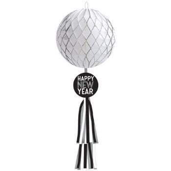Hvítt og svart "Happy New Year" áramóta hunangsbú - 70cm