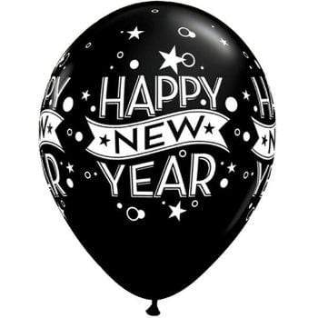 Svört "Happy New Year" blaðra - 30cm