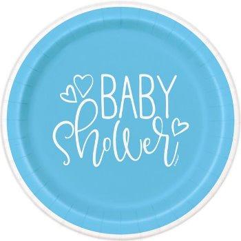 Ljósbláir pappadiskar með silfur stjörnum- 6 stk í pakka