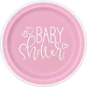 Hvítir matardiskar með bleikum og gylltum doppum 8 stk