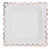 Hvítir og rósagylltir ferkantaðir kökudiskar 10 stk