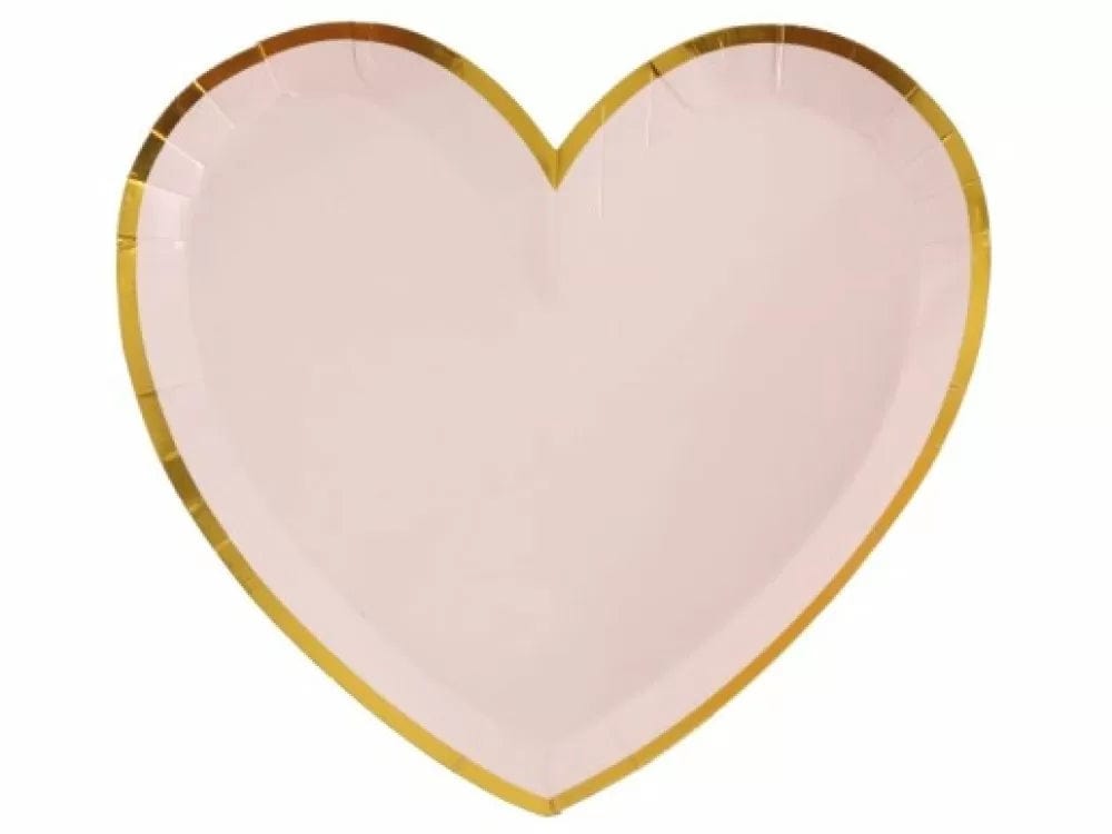Ferskjubleikir og gylltir hjarta pappadiskar 10 stk