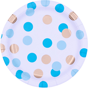 Hvítir matardiskar með bláum og gylltum doppum 8 stk