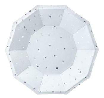 Ljósbláir pappadiskar með silfur stjörnum- 6 stk í pakka