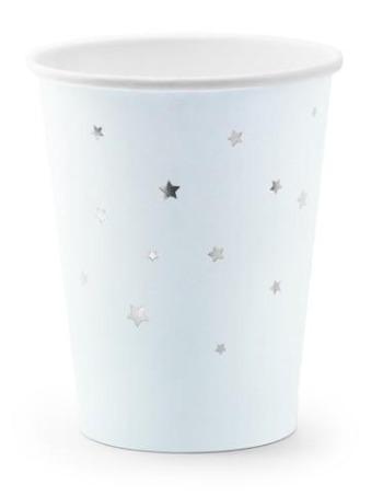 Ljósblá glös með silfur stjörnum- 6 stk í pakka