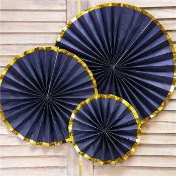 Dökkbláar rósettur með gylltri rönd - 3 stk