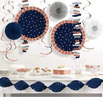 Blátt rósagyllt og hvítt skreytingasett - 14 stk