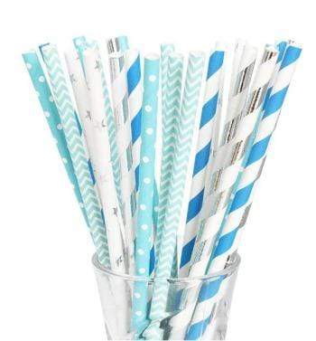 Blá og silfruð blönduð rör - 25 stk í pakka
