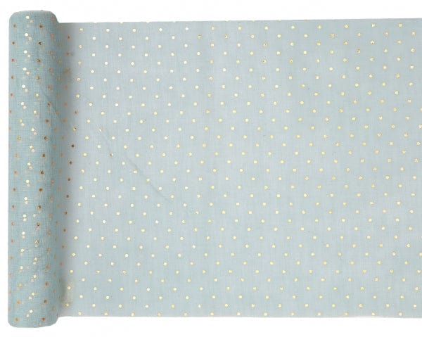 Ljósblár renningur með gylltum doppum 26cm x 3m