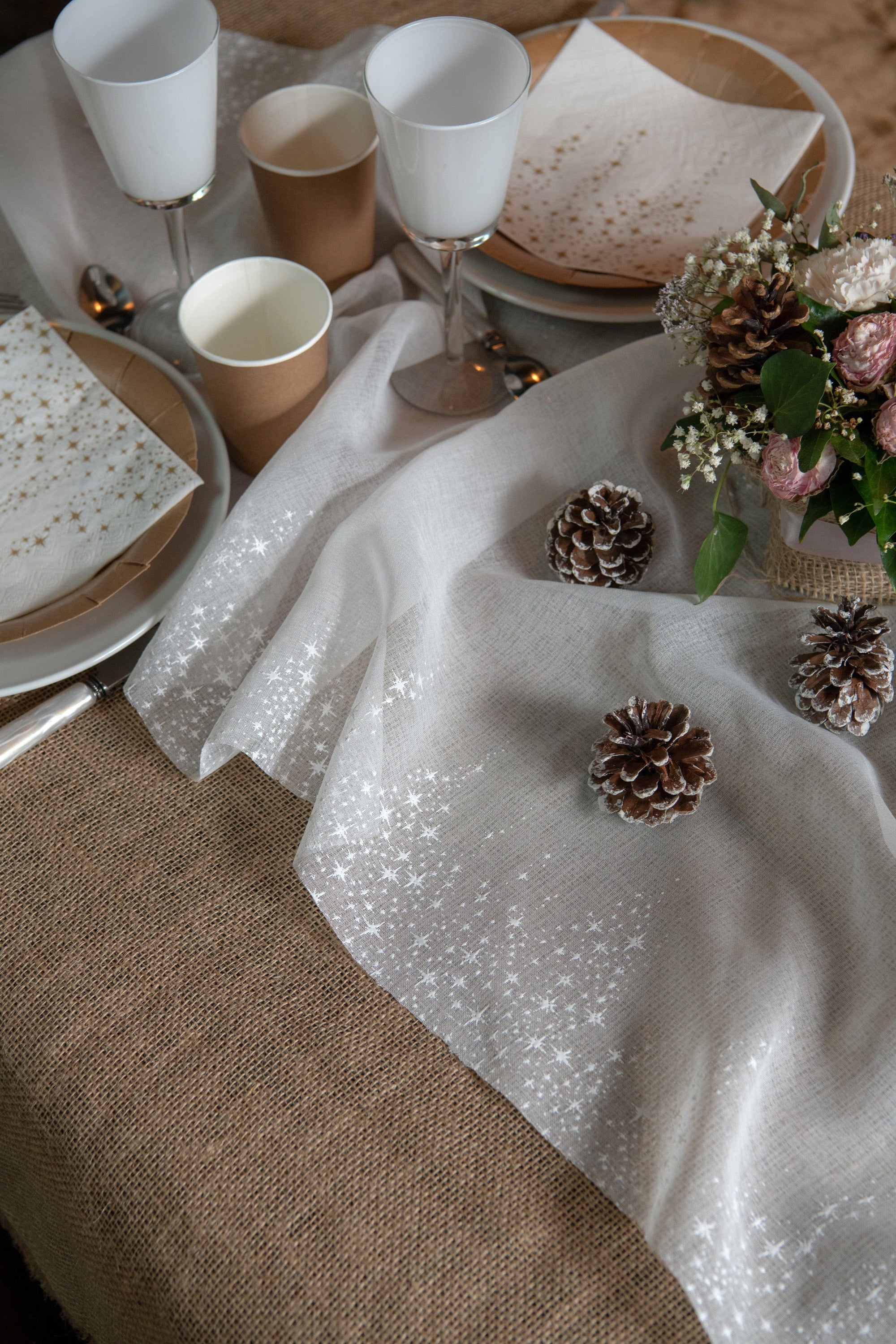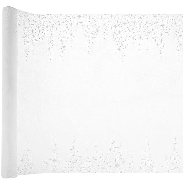Hvítur borðrenningur með stjörnum 46,5cm x 3m