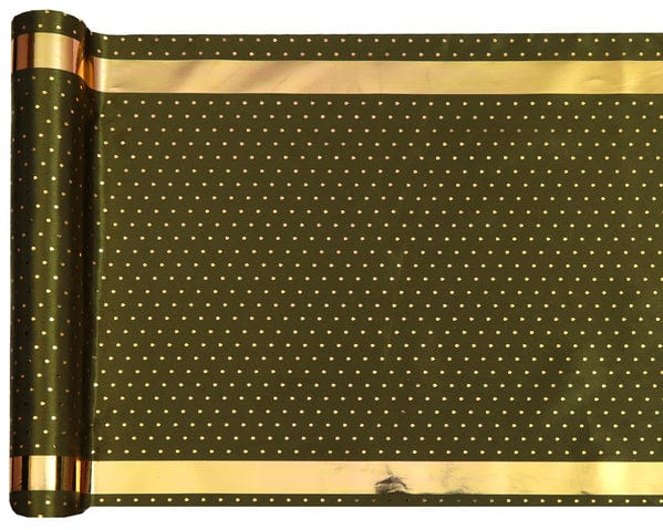 Ólífu og gylltur borðrenningur - 28cm x 3metrar
