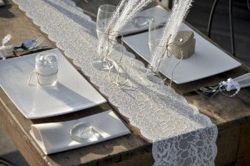 Hvítur blúndu borðrenningur- 18cm x 3m