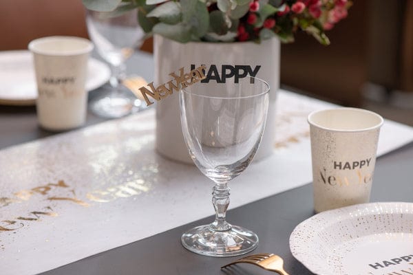 Gyllt og svart "Happy New Year" skraut - 10 stk