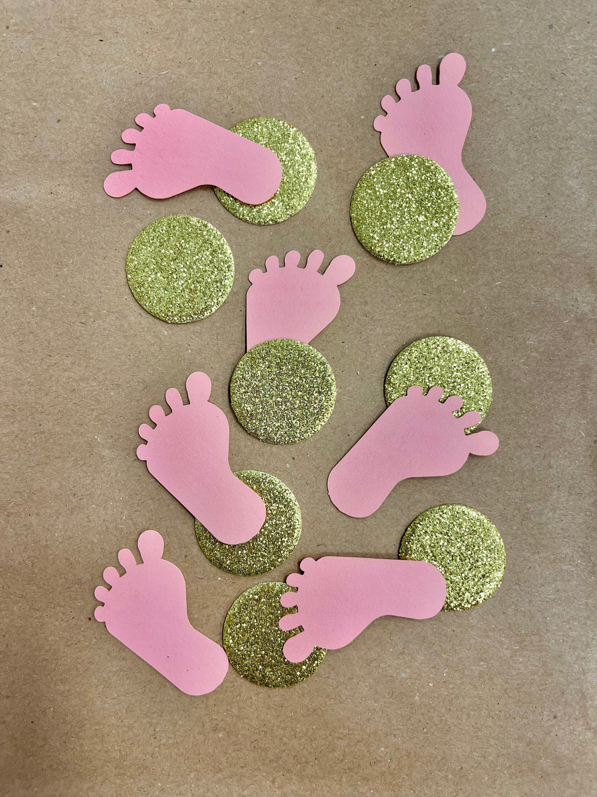 Bleikt og gyllt glimmer tásu confetti 100stk