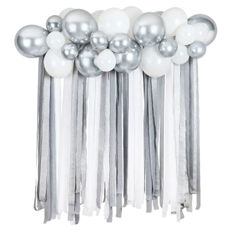 Blöðrubogi silfur, navy, dusty blár og gráar (ósamsettur) 200 blöðrur