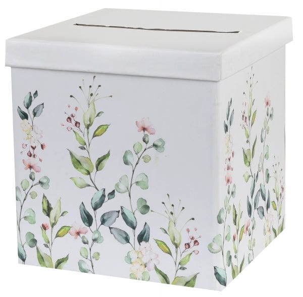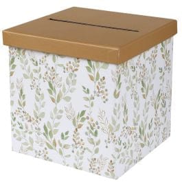 Hvítur kortakassi með laufum og gylltri ‘‘Cards‘‘ merkingu 24cm