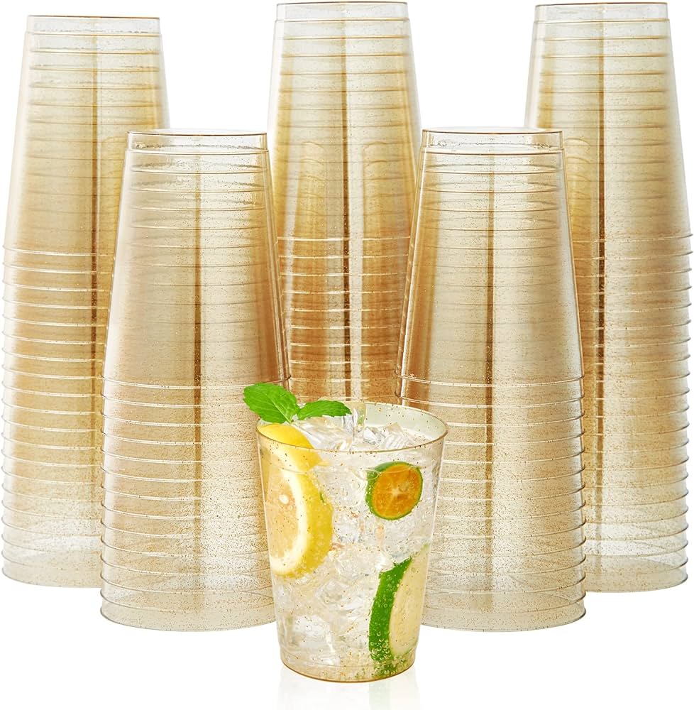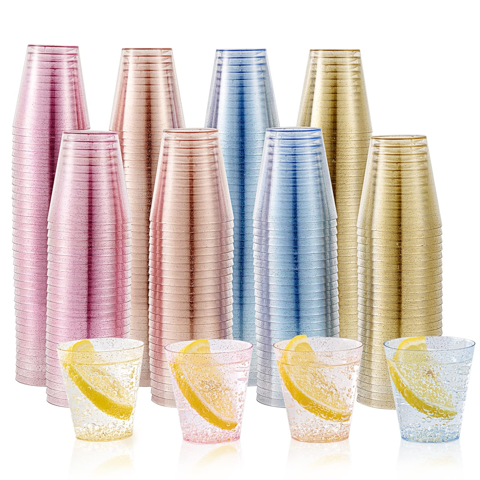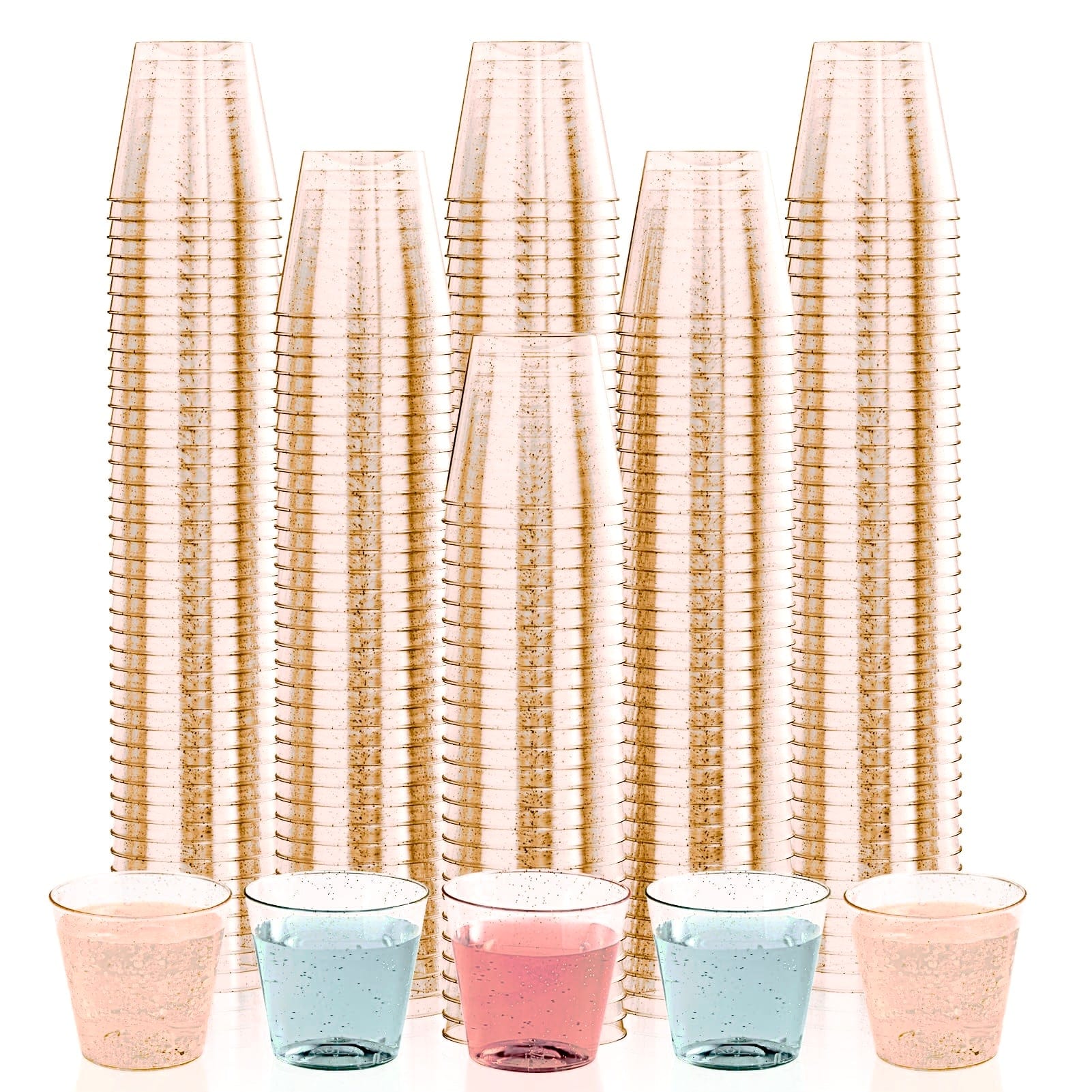 Plast gyllt glimmer skotglös (2cl) 10stk eða 20stk