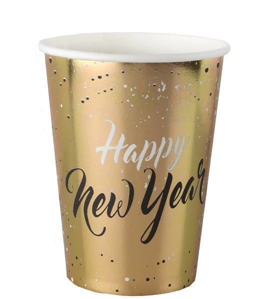 Beige pappaglös með gylltum stjörnum 220ml - 6stk