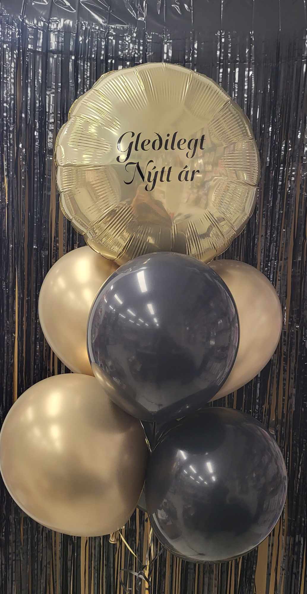 Gylltur áramótavöndur "Gleðilegt Nýtt ár" - með helíum og blöðrulóði