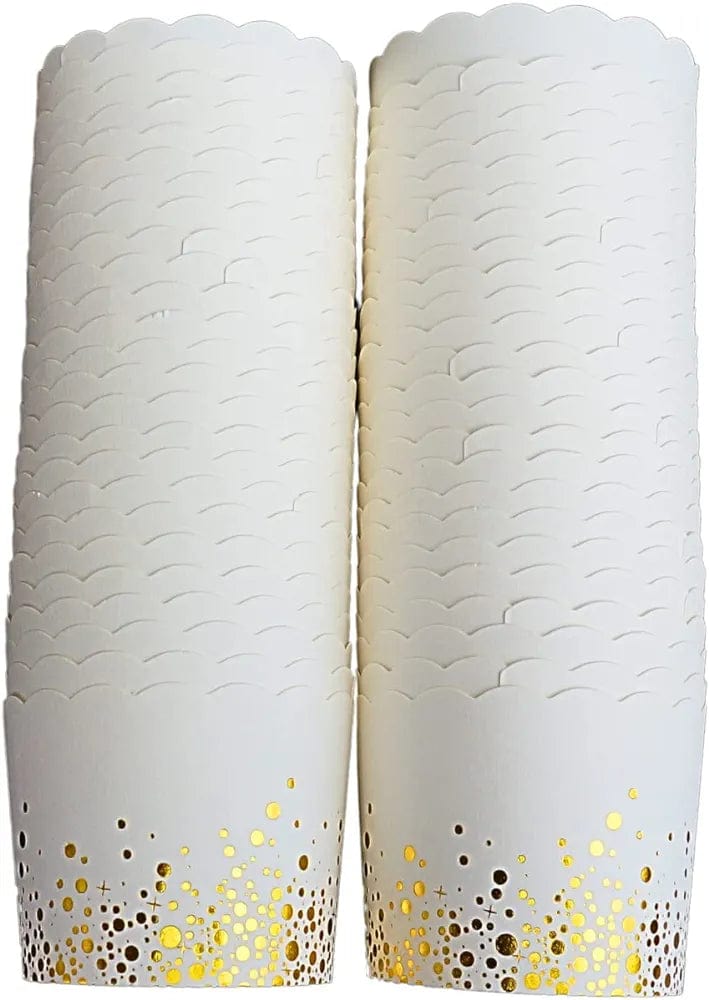 Kremaðir pappadiskar með gylltu munstri 10stk