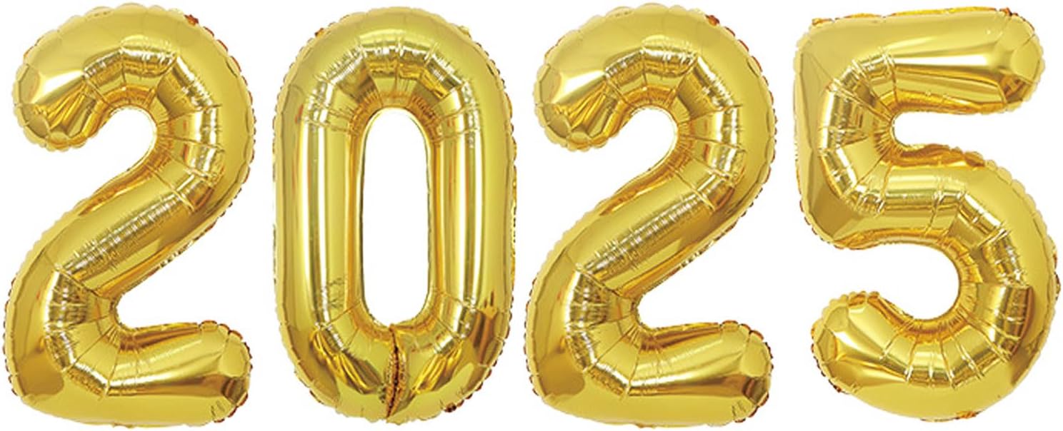 Gylltar og hvítar "Happy New Year" blöðrur - 12stk í pakka