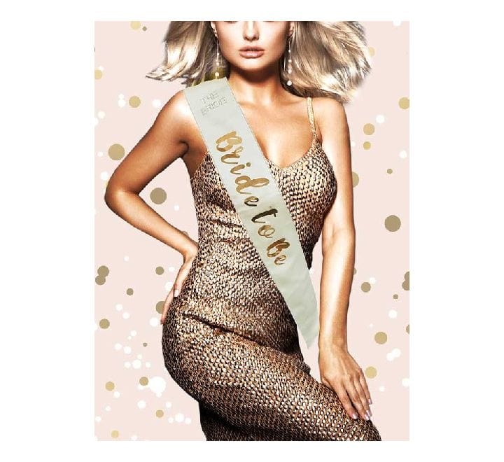 Gylltur glimmer "Bride to be" borði með hvítu letri