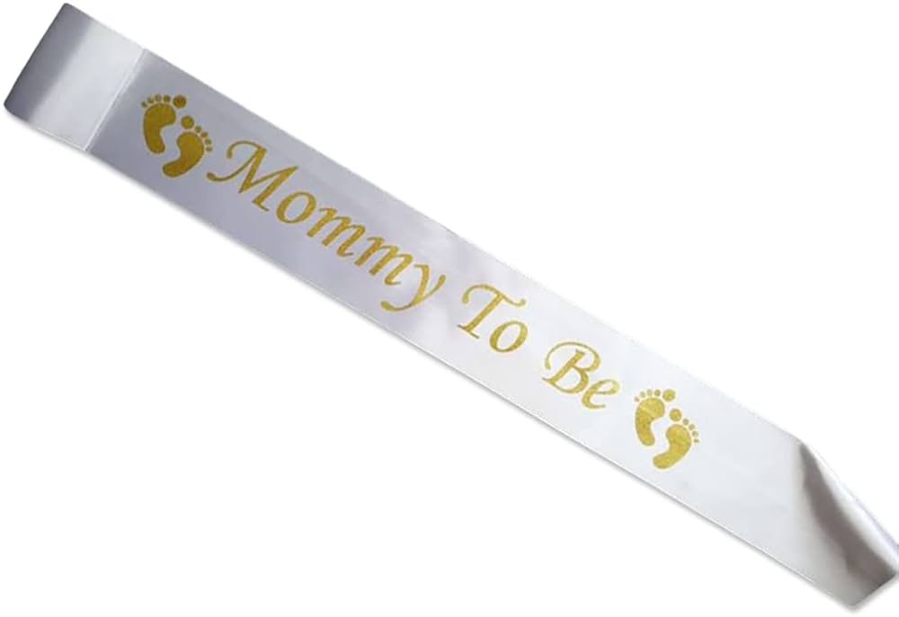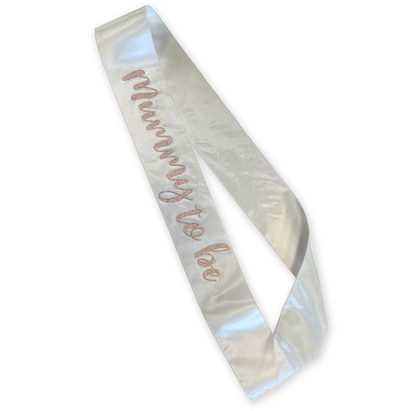 Hvítur og rósagylltur "Mummy to be" borði með litlum demöntum